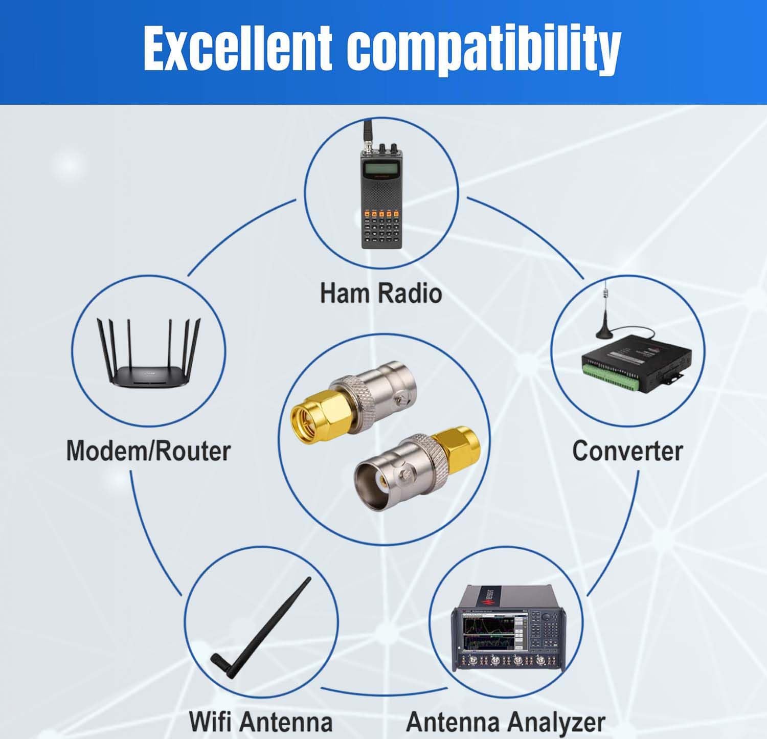 BNC Female to SMA Male Coax Connector Adapter (Pack of 4)