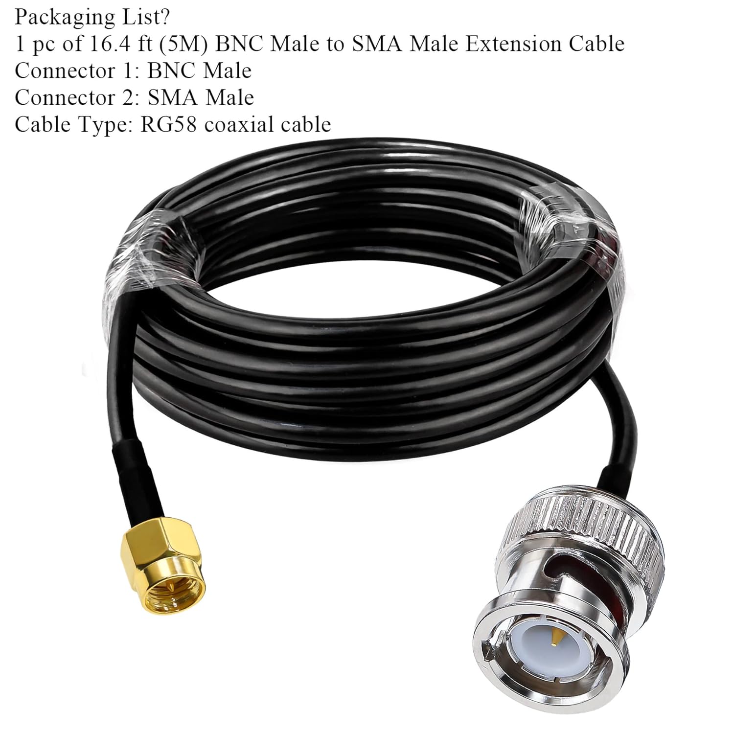 BNC Male to SMA Male Extension Cable RG58 16.4ft(5 Meter) for Antennas Wireless LAN Devices